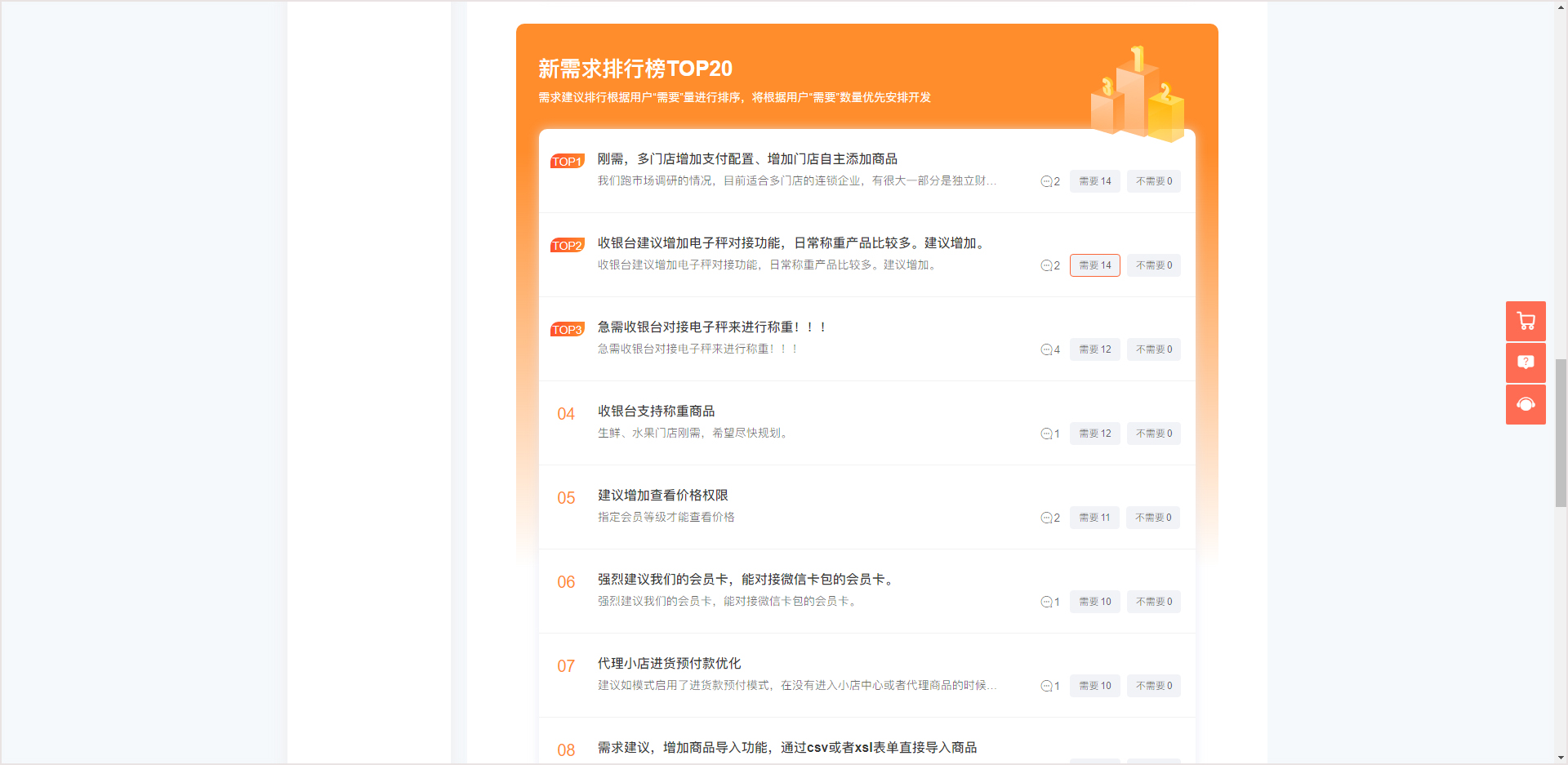 我们会认真的收集和整理用户在需求中心提交的每一条信息,用户可以根据自己的的实际问题提交新需求,或在需求中心找到相同需求点击“需要”,需求排行榜将根据需求的“需要”数量进行排序。