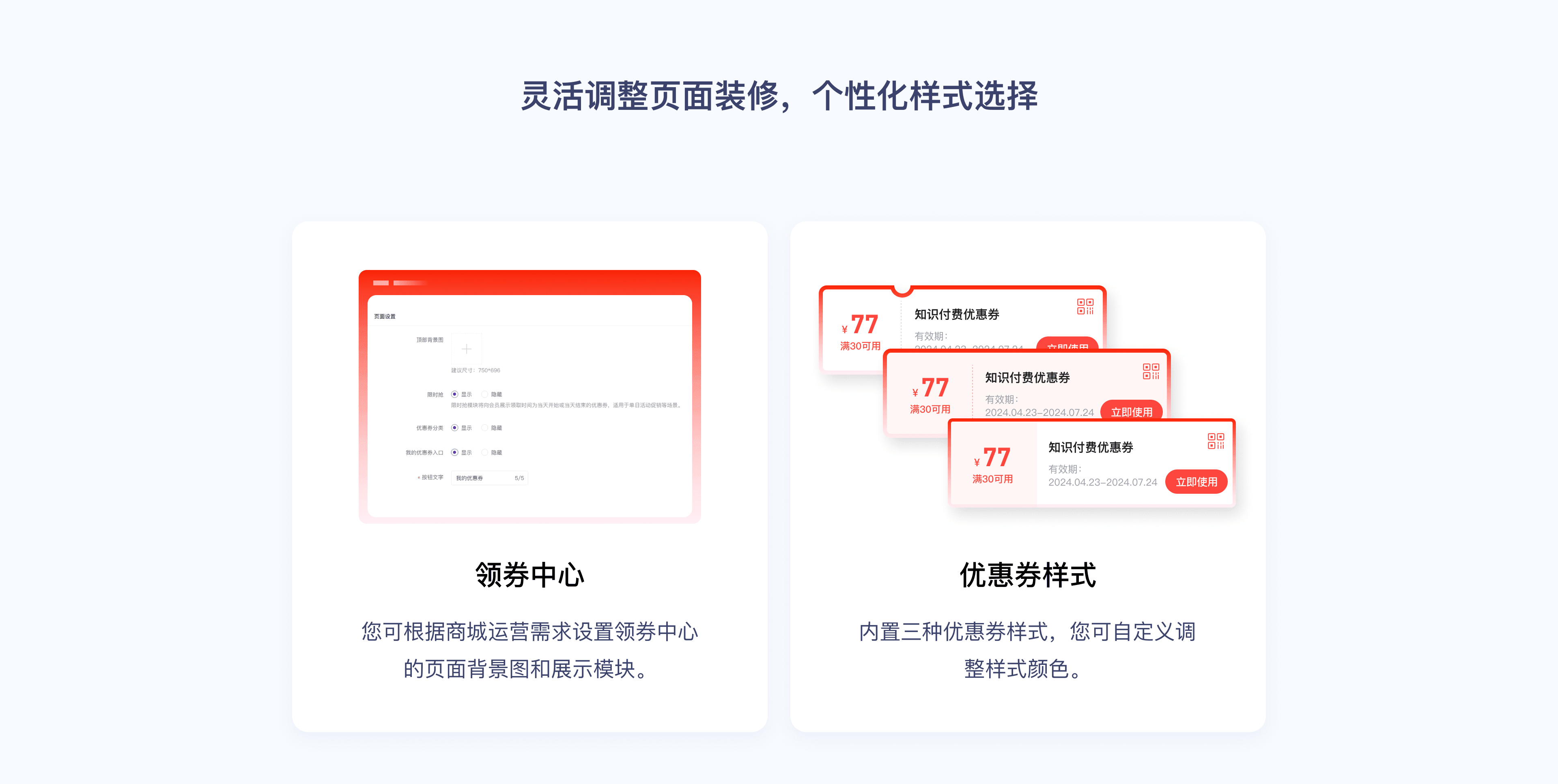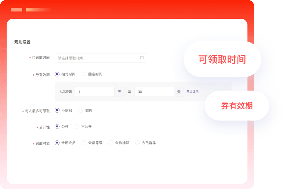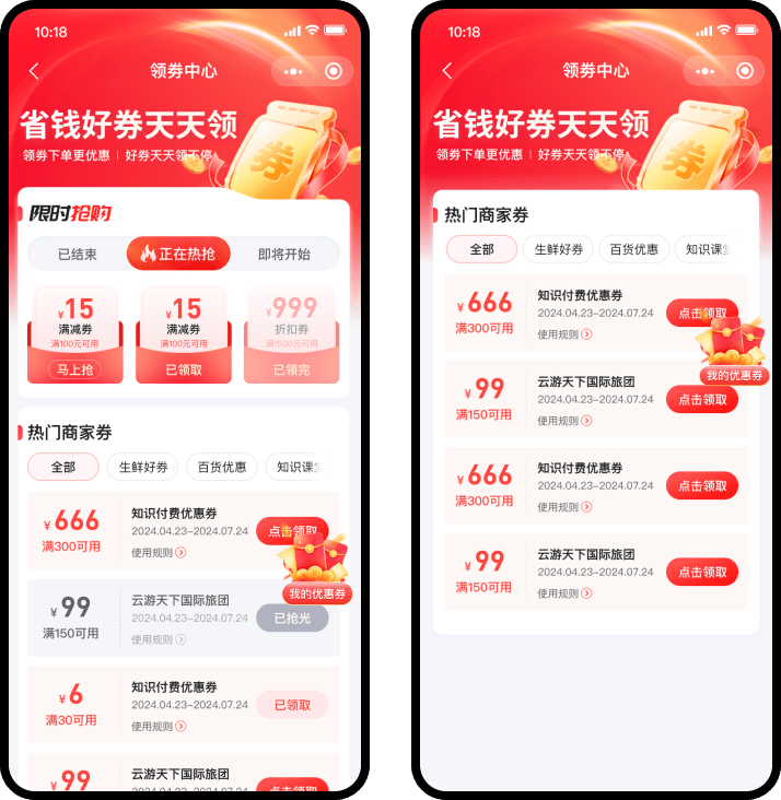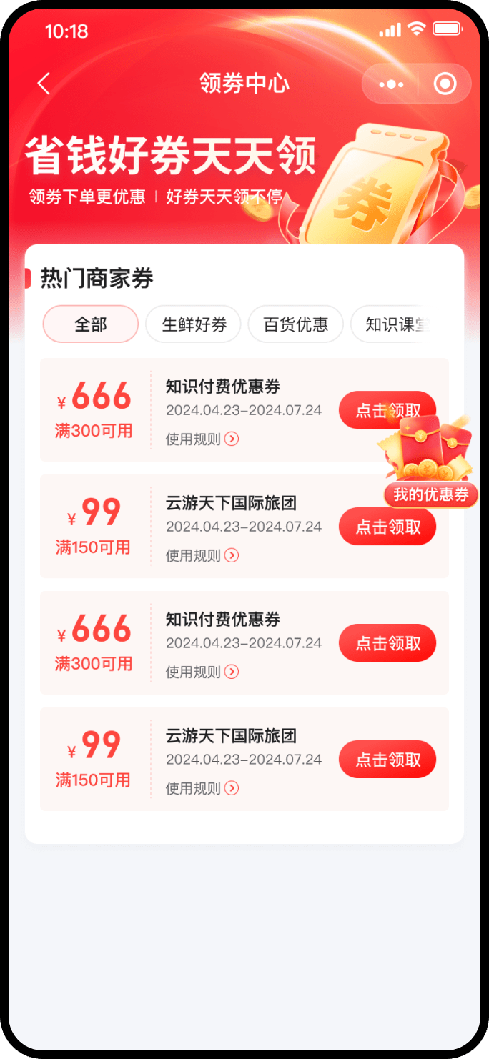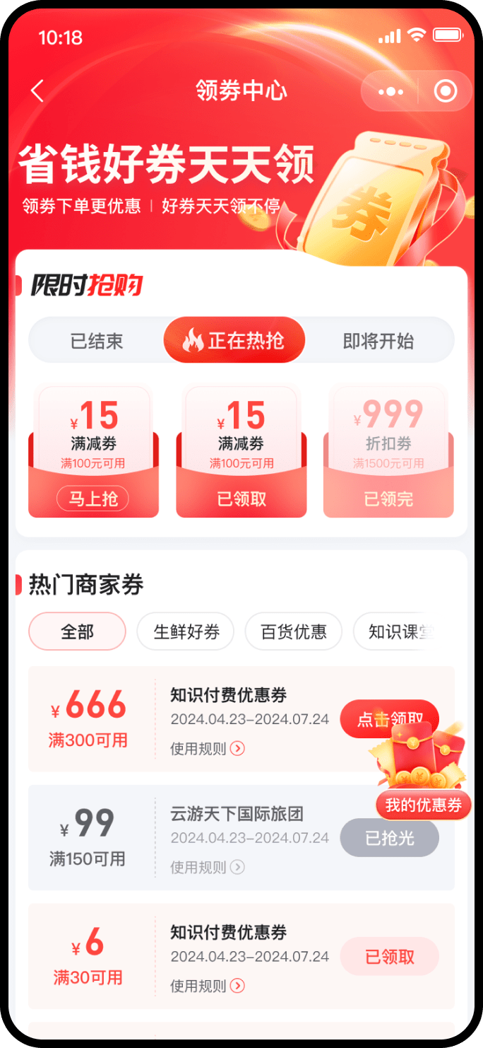 优惠券集中发放入口,不仅能为商品精准引流,提升交易额,同时为商城顾客带来优质购物体验。