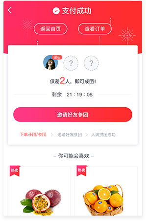 EWEISHOP拼团系统可一键分享邀请海量好友参与团购,可快速引流降低库存积压。